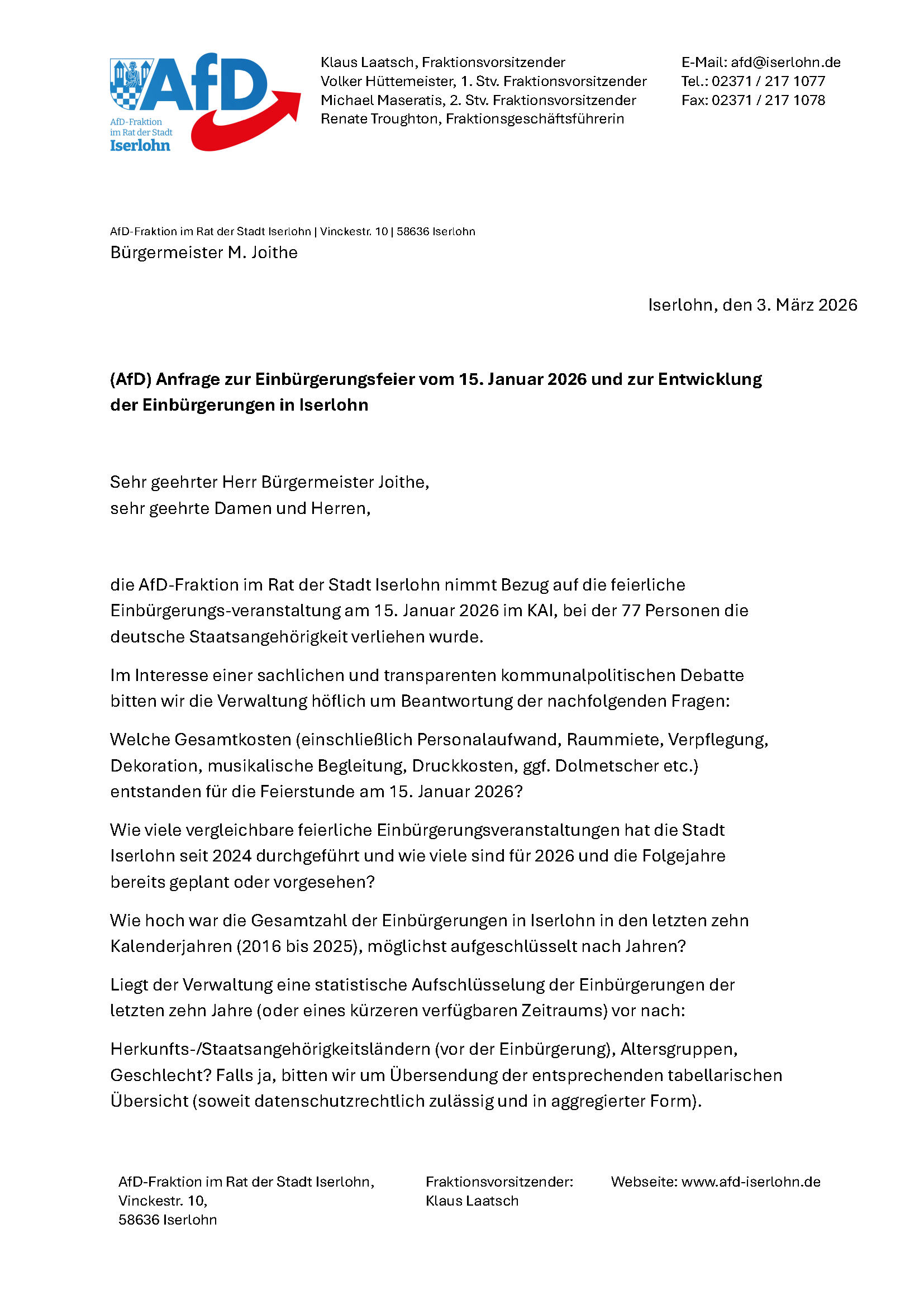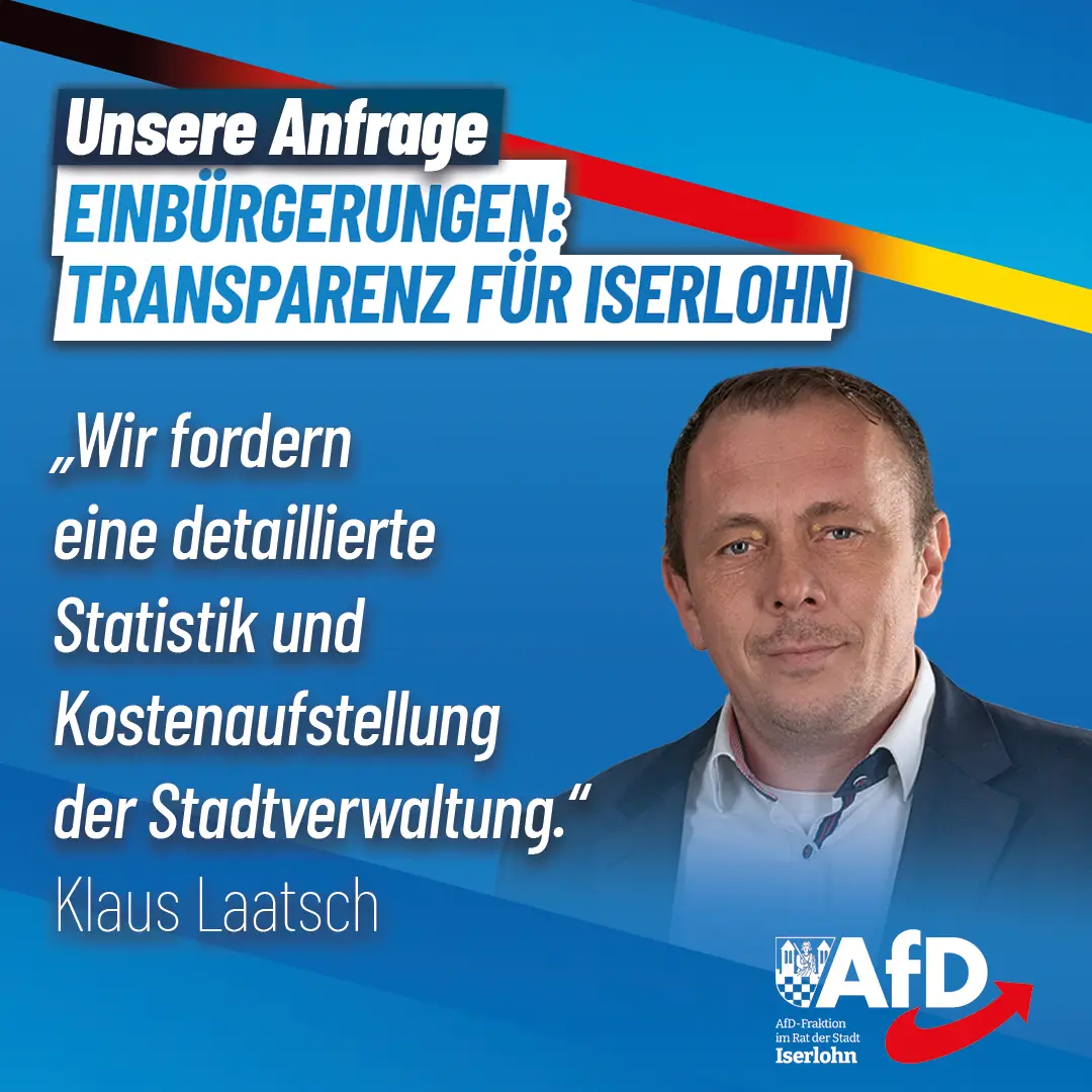 Die AfD-Fraktion im Rat der Stadt Iserlohn hat einen praxisnahen Antrag eingebracht: Die Verwaltung soll zeitnah die technischen und finanziellen [...]
