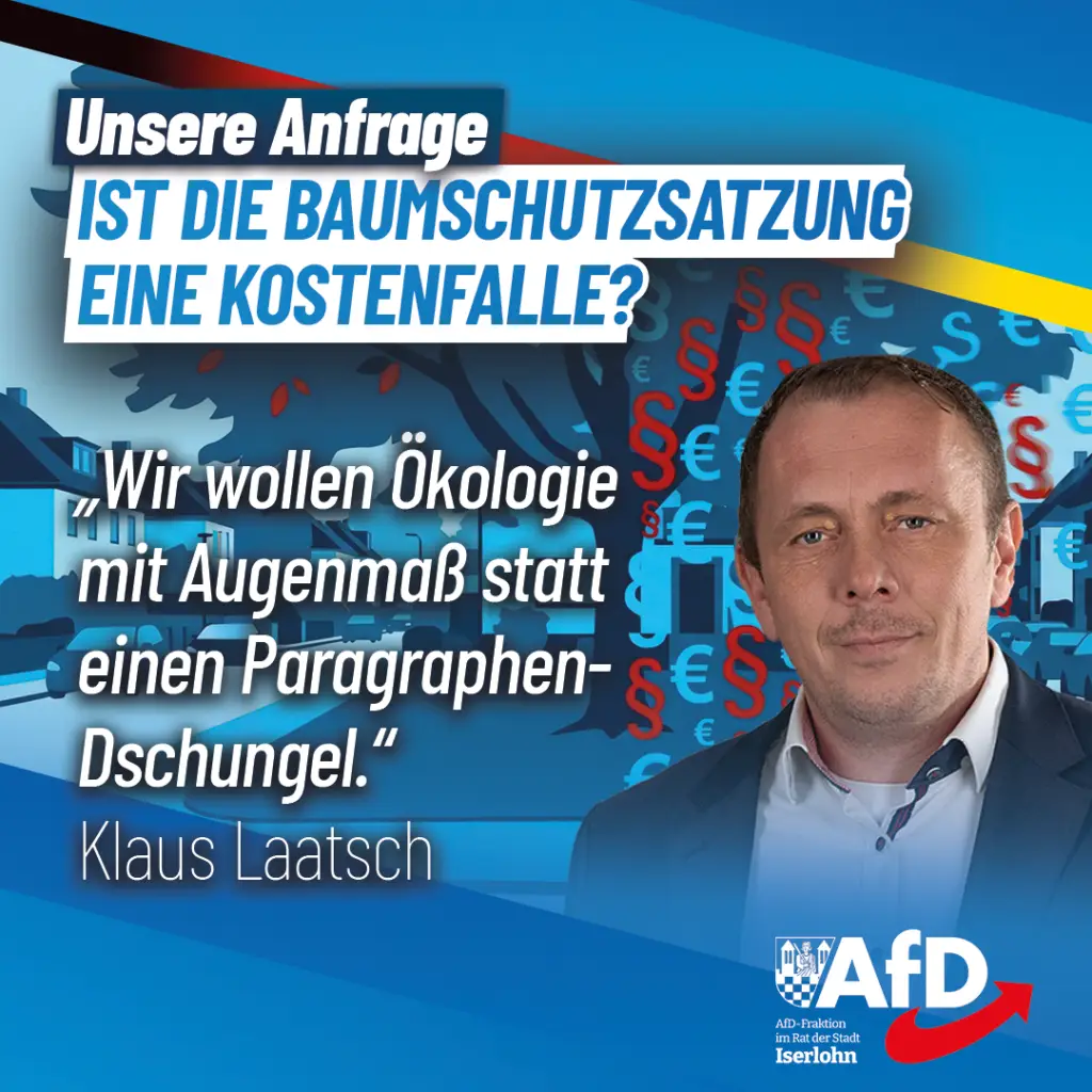 Unsere AfD-Fraktion Iserlohn setzt sich konsequent für eine transparente und verantwortungsvolle Haushaltsführung ein. Vor dem Hintergrund der anhaltenden Haushaltszwänge unserer Stadt haben wir eine umfassende schriftliche Anfrage zur Überprüfung der Baumschutzsatzung eingereicht. Unser Ziel ist es, die wirtschaftliche und ökologische Tragfähigkeit dieser Regelung detailliert zu beleuchten.