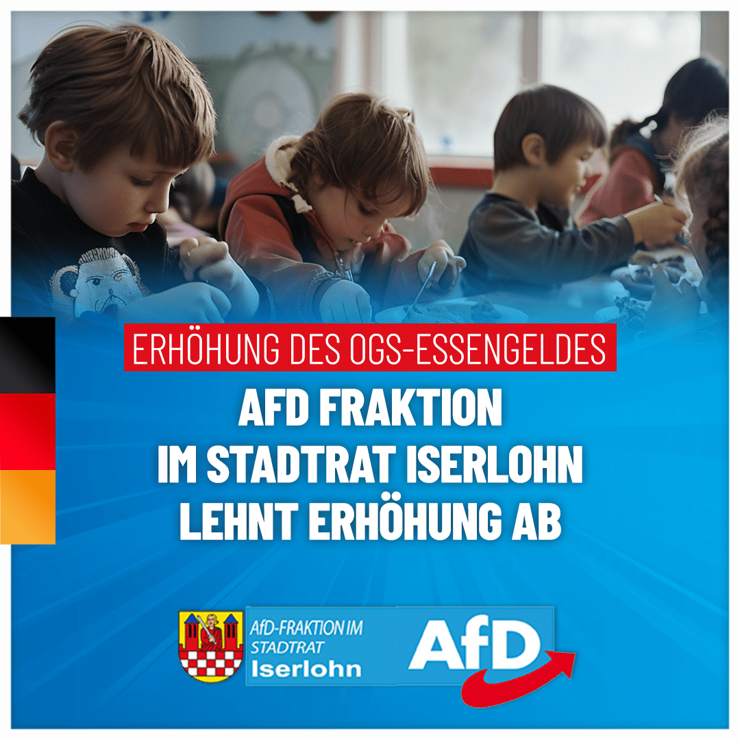 Wir als AfD Fraktion im Stadtrat Iserlohn sprechen uns klar gegen die geplante Erhöhung des Essensgeldes in den OGS und Kitas aus. Diese Entscheidung belastet die Bürger und Eltern unserer Stadt zusätzlich und ist in der aktuellen Situation nicht tragbar. Ratsmitglied Romina Laatsch betont: "Die Bürger und Eltern tragen bereits genug Lasten. Ihnen jetzt noch [...]